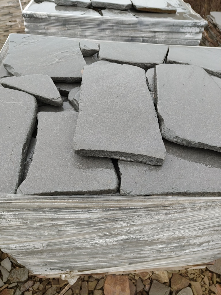 Плитняк песчаник синий галтованный для облицовки цоколя, отмостки 20-25 мм